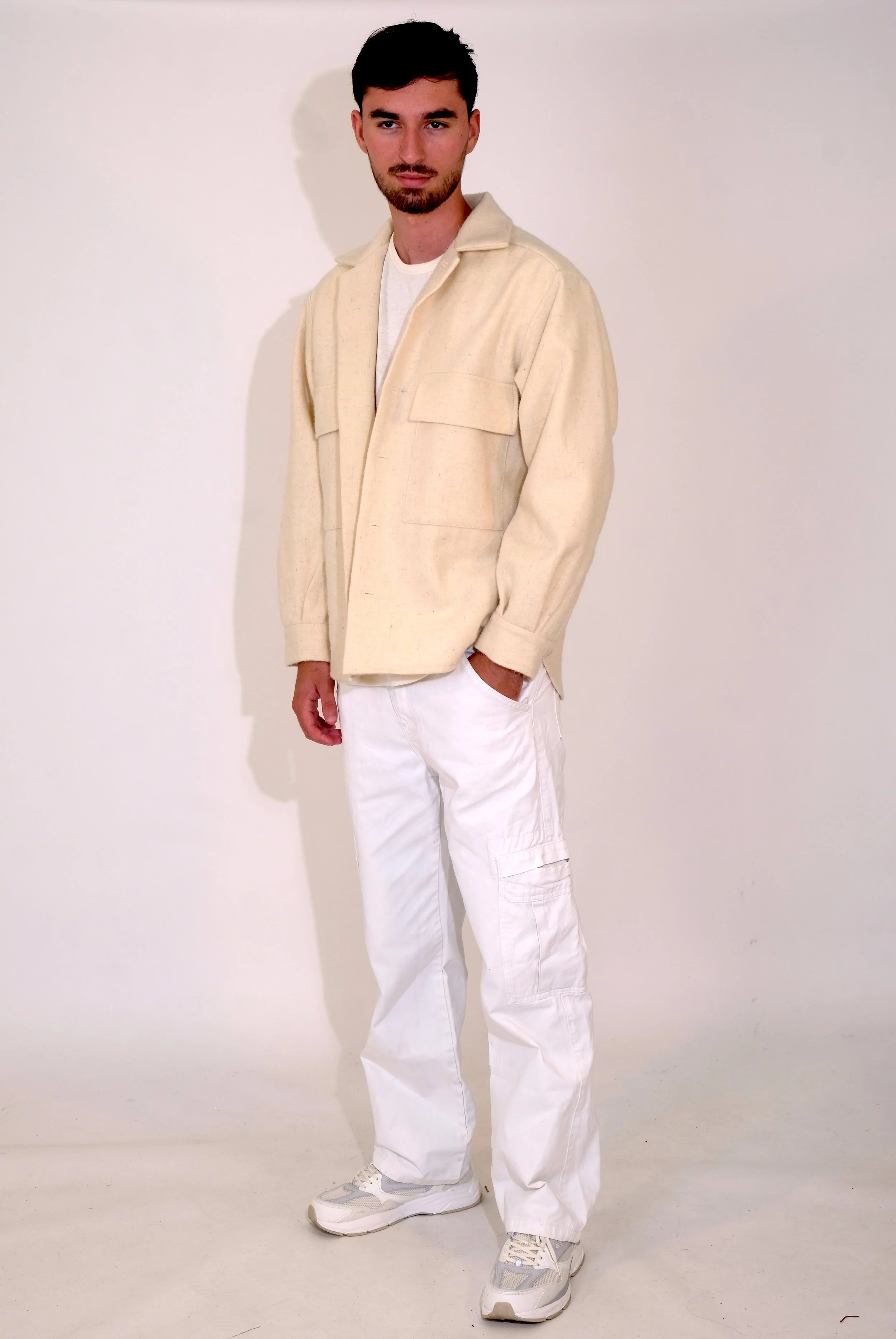 Surchemise MARBORÉ en 100 % laine des Pyrénées – Ecru chiné.
