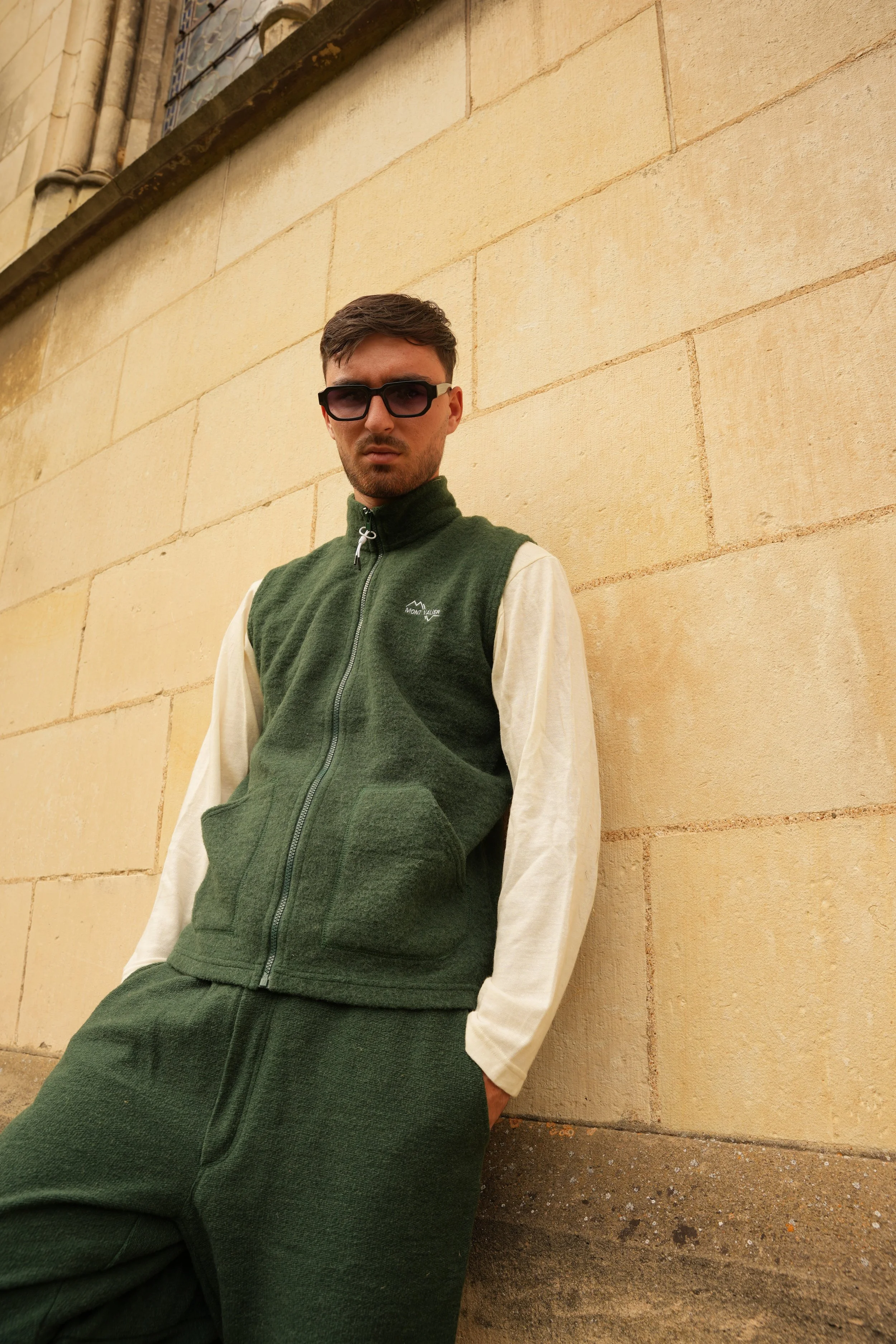 Gilet BÉARN Vert Forêt en laine des Pyrénées