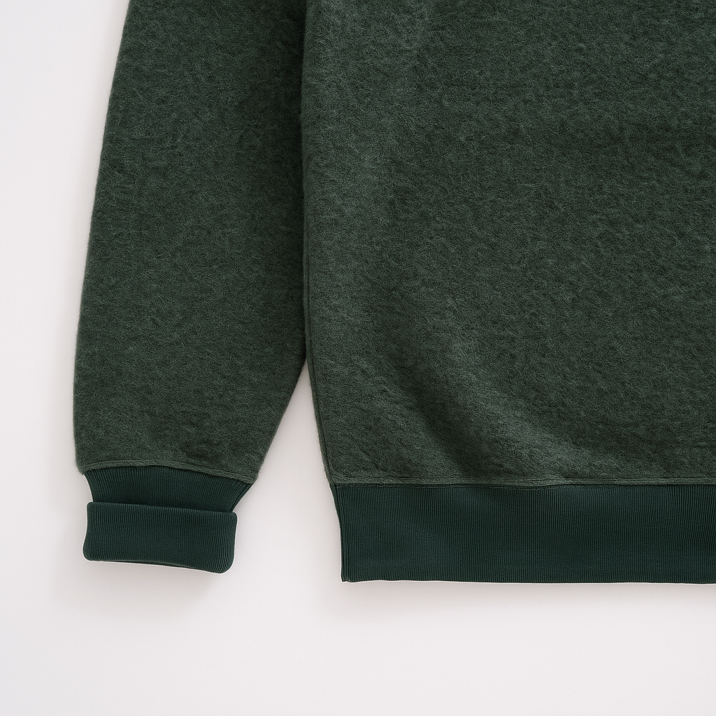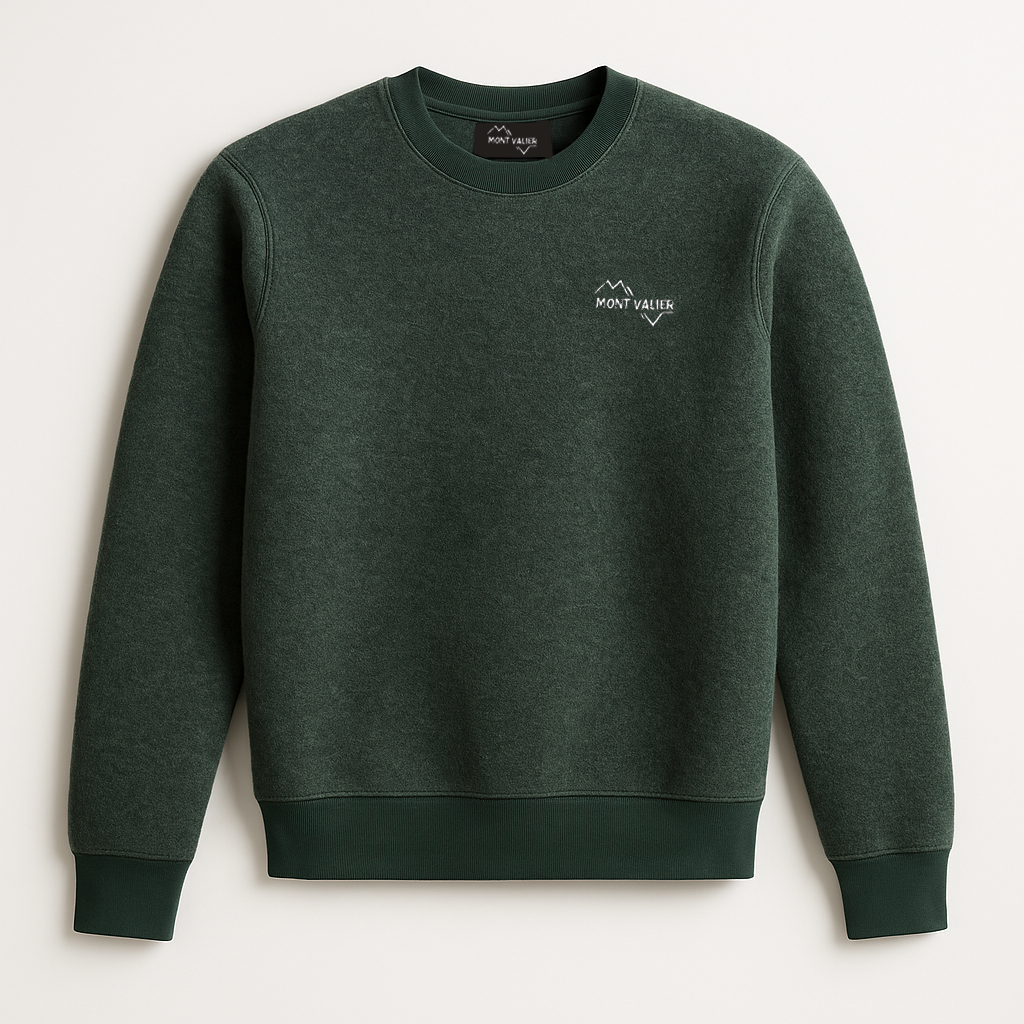 Sweat mixte MONTAIGU Vert Forêt en laine des Pyrénées.